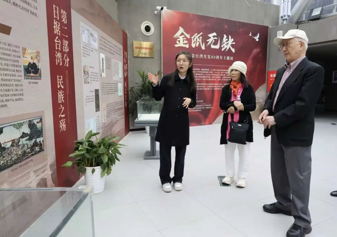 在第一个台湾光复纪念日到来之际,南京抗日航空烈士纪念馆举办的主题展“金瓯无缺——纪念台湾光复80周年”迎来了首批观展群众。当天,曾向南京抗日航空烈士纪念馆捐赠1945年台湾受降仪式时日本献降军刀的林氏兄弟中的林中明,也携夫人专程来馆参观展览。