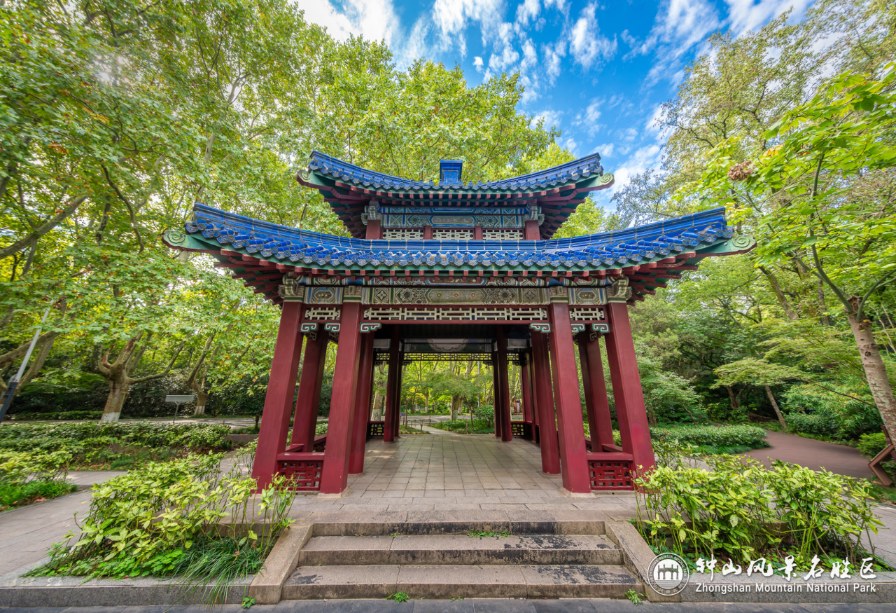 Located at the intersection of Lingyuan Lu and Mingling Lu, Xingjian Pavilion takes its name from The Book of Changes: “Just as heaven keeps moving forward vigorously, a man of virtue should strive continuously to strengthen himself.” After the construction of Sun Yat-sen Mausoleum, the then mausoleum management committee built several commemorative structures to shape the mausoleum into a national-scale natural park — Xingjian Pavilion is one of them.