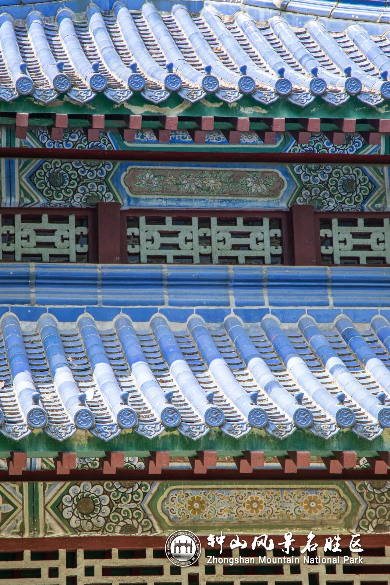 The pavilion was designed by the renowned architect Zhao Shen (Chao Shen) and built by the Wang Jing Construction Factory, completed in the summer of 1933. Harmonizing with the overall architectural style of the mausoleum, it is a Chinese-Western fusion pavilion. Its layout is square, 9.3 meters per side, 12 meters high, with a four-sided, double-eaved pointed roof covered in blue glazed tiles. Inside, 16 red pillars support the structure, while the architraves, beams, and bracket sets are all adorned with colorful painted decorations. The square coffered ceiling features ruyi motifs in each corner of its panels. Low red seating rails, about 0.4 meters high, run along the pillars, offering visitors a comfortable place to sit and rest.