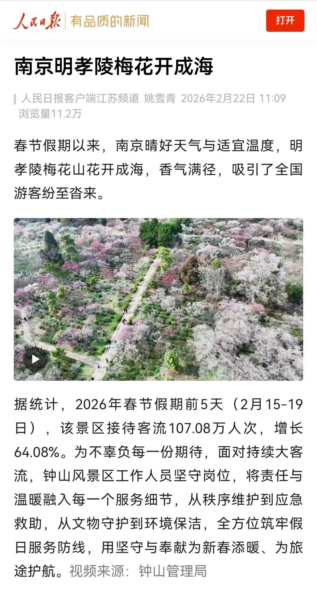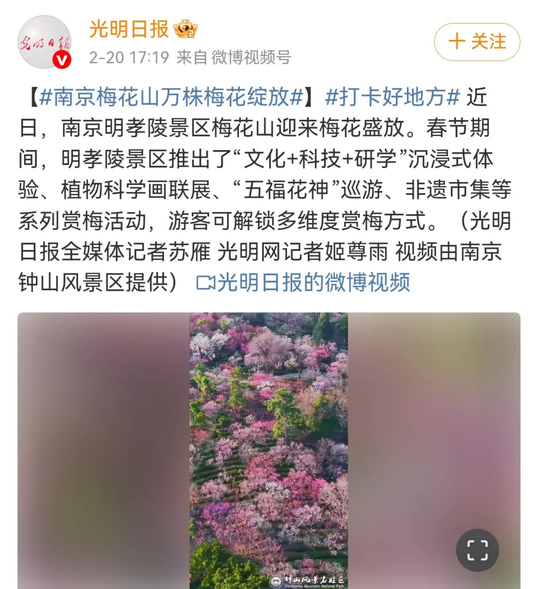 《人民日报》、中央电视台、《光明日报》、中国新闻网多次聚焦!南京梅花山,绽放中国式春天的浪漫!