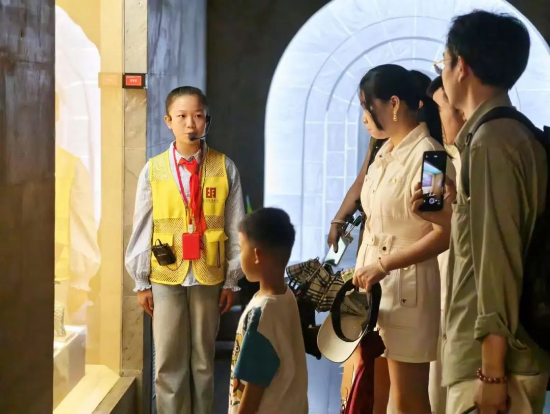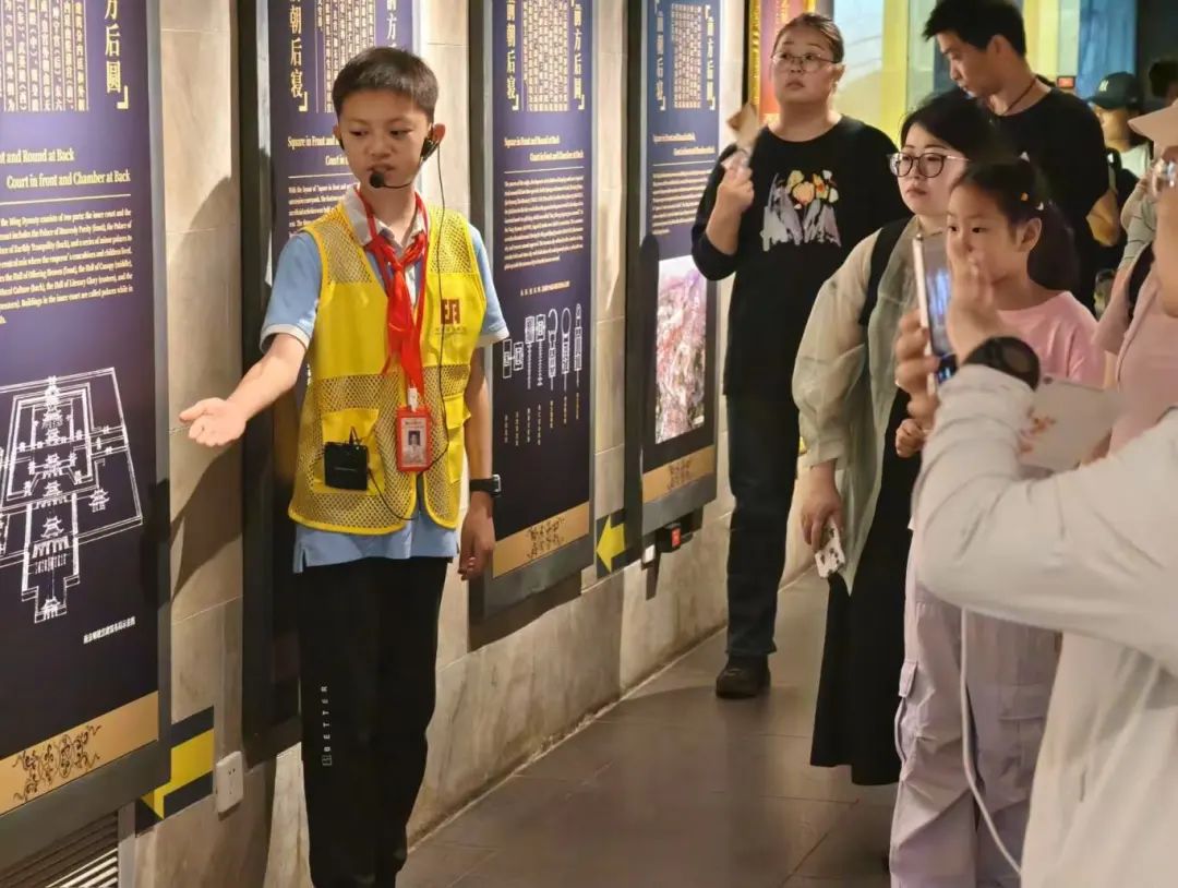 “明博黄”与“明小博”志愿服务队如夏日清风,以声传韵。截至6月,服务队讲解135场次,接待游客3890人次,让历史在讲述中鲜活。