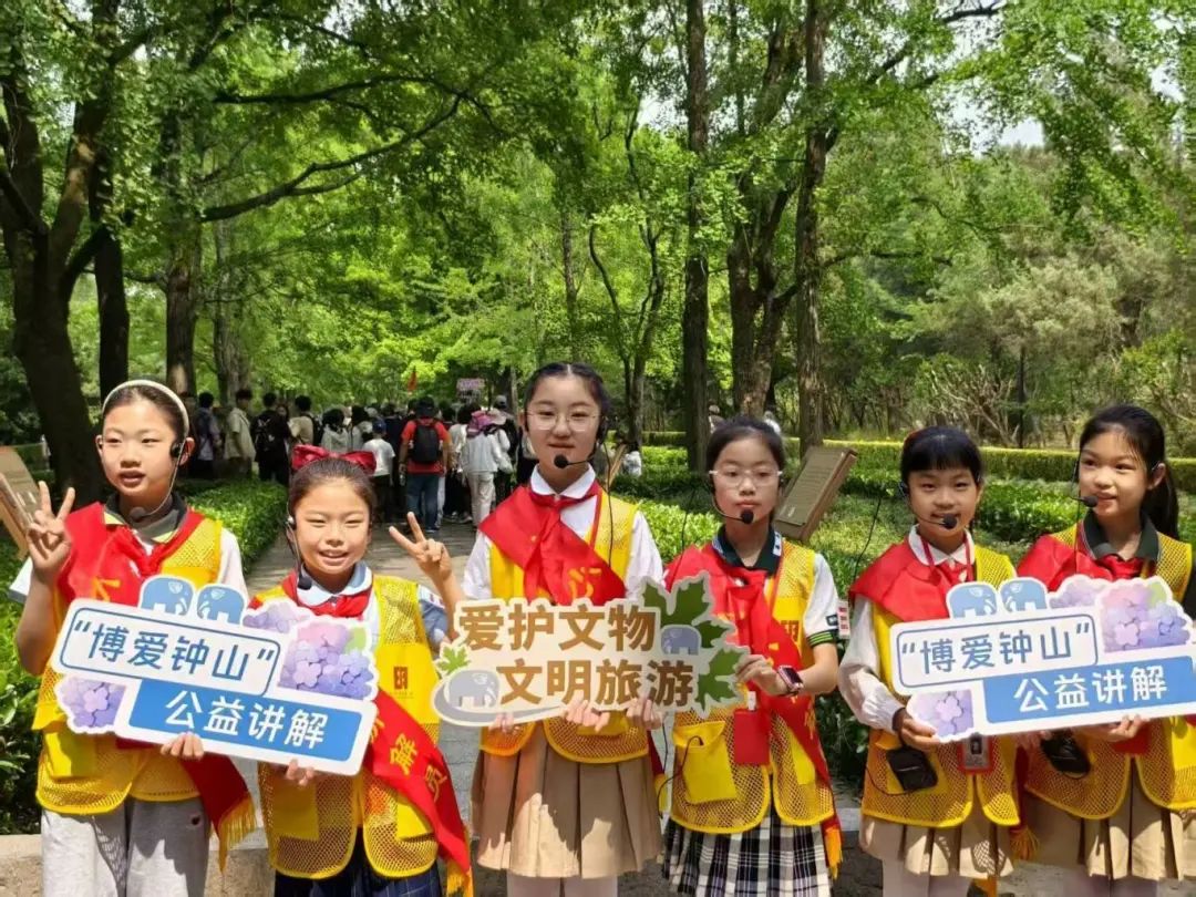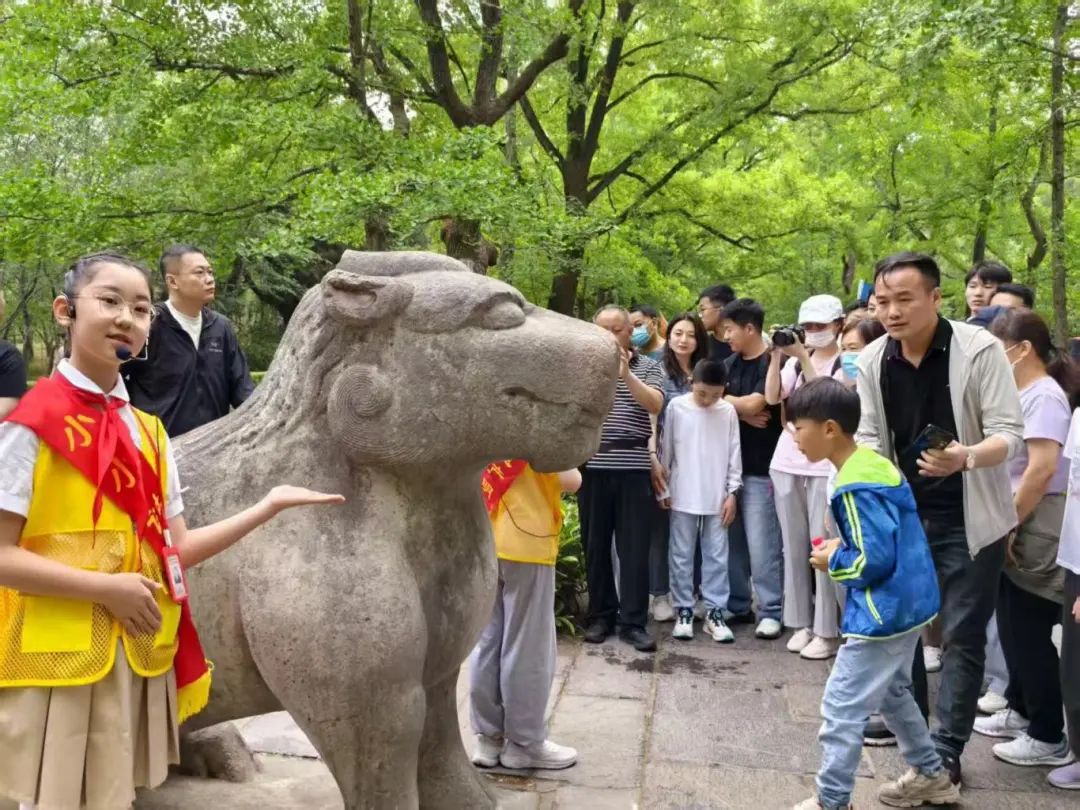“五一”假期,“明小博”小小志愿服务队走进石象路开展“博爱钟山”公益讲解。稚嫩的声音里,神道石刻的故事娓娓道来,吸引众多游客驻足聆听。