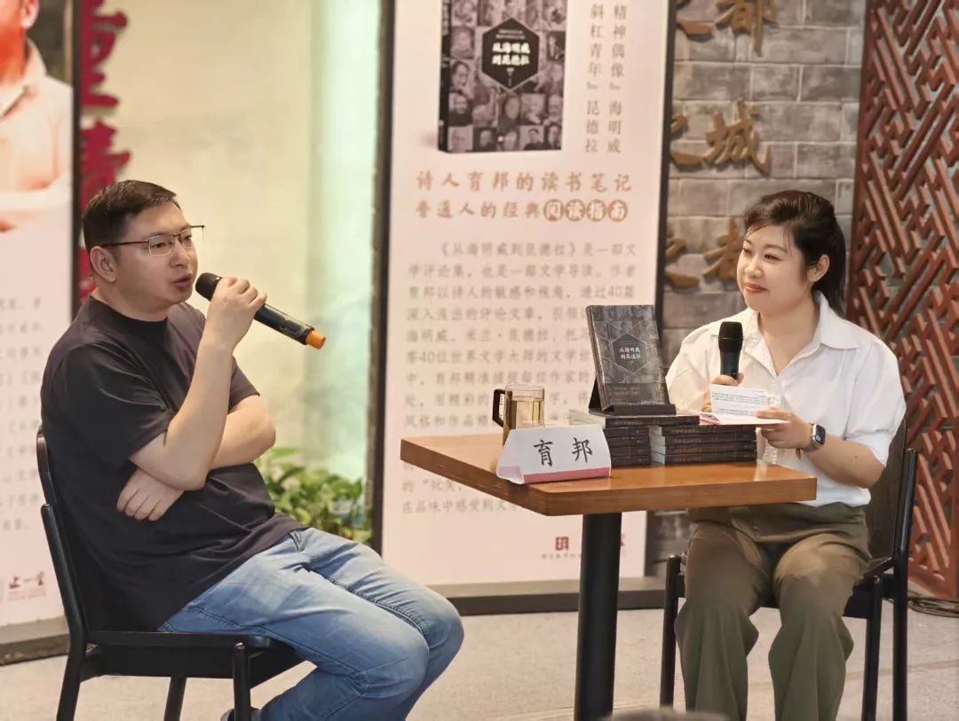 6月文化与自然遗产日,“雅集·博物馆的朋友圈”推出“诗心叩问六百年”特别对谈。活动特邀当代著名诗人、小说家育邦先生,与青年学子围坐畅谈。育邦先生以《从海明威到昆德拉》为引,分享创作感悟与文学见解,在书香雅韵中对话古今,叩击文学本心。