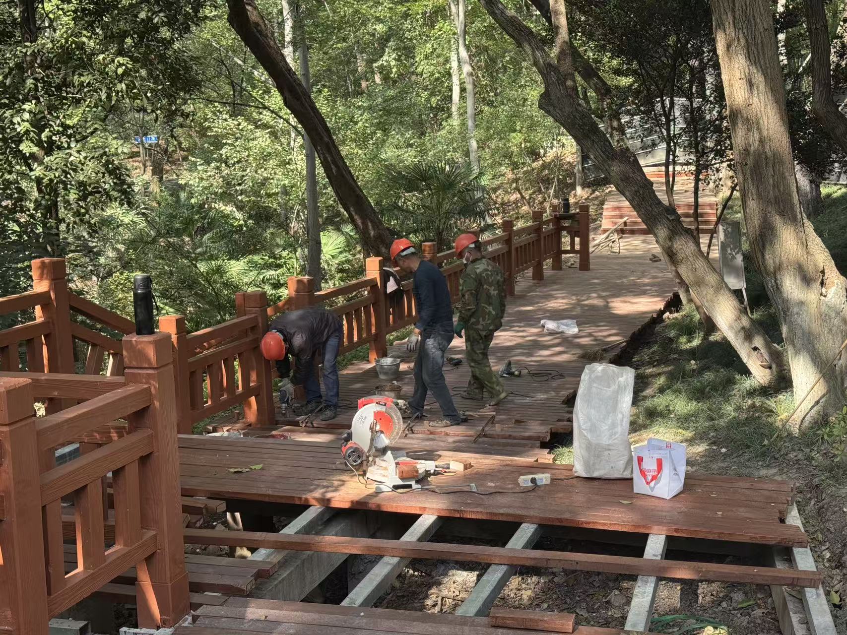 栈道、平台作为亲水设施,因长期暴露在潮湿环境和风雨侵蚀中,易出现老化、锈蚀、开裂等情况,存在较大的安全隐患。为保障市民游客安全,景区近期实施了前湖、琵琶湖栈道平台设施应急维修项目。