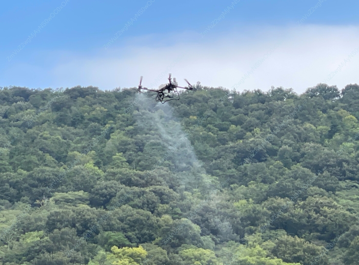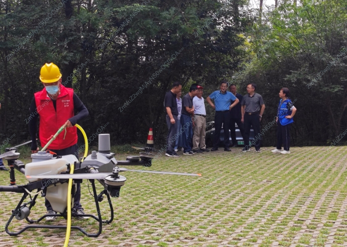调研组一行首先来到灵谷景区,登上灵谷塔实地查看紫金山森林资源健康状况,并运用无人机遥感监测技术,对松枯死树伐除情况进行全方位巡查。局领导详细询问了疫木清理、除治进度及技术规范落实情况,强调要严格按照“即死即清”原则,确保除治工作不留死角。随后,调研组前往无人机防治作业现场,观摩了无人机喷药防治的全流程操作,重点了解了防治区域划分、作业面积、药剂配比及环境安全性等关键环节。技术人员现场演示了智能飞防系统的精准施药过程,局领导对防治工作的科学性和高效性给予充分肯定。