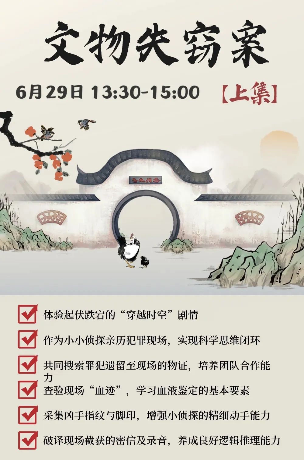 明孝陵博物与紫金山自然学堂联袂推出“小小侦探体验季”研学活动。通过上集“文物失窃案”我们一起探索指纹、血液、推理的奥秘......下集"文物追寻记”化身小小文物修复师,与文物进行一场时空的对话。
