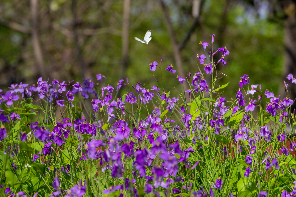 明孝陵景区内,二月兰正恣意生长,满眼都是清新淡雅的紫色花海;白马公园的彩色油菜花层层叠叠,绘就一幅春和景明的缤纷画卷。